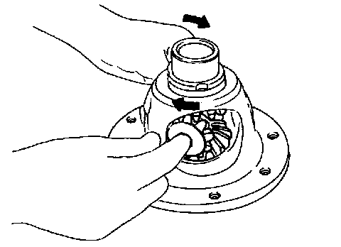 c. If not within specification adjust clearance by changing thickness of side gear thrust washers.