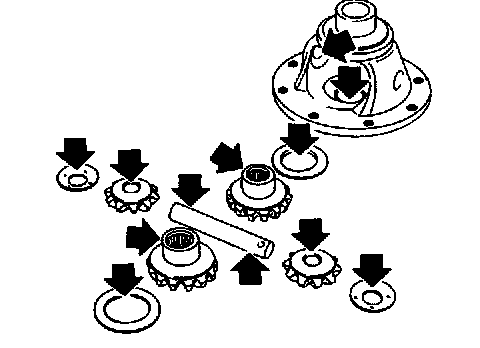 - Check mating surfaces of differential case, side gears and pinion mate gears.