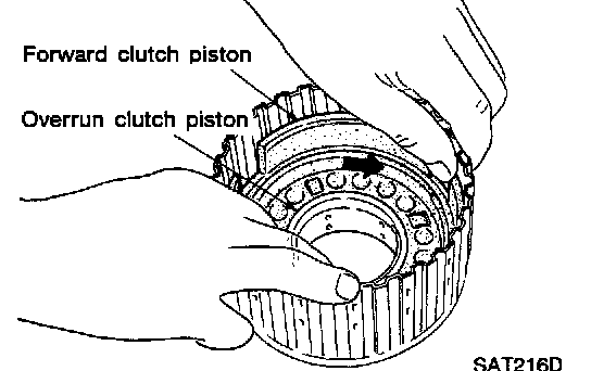 9. Remove overrun clutch piston from forward clutch piston by turning it.