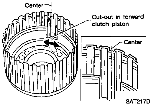 4. Align notch in forward clutch piston with groove in forward clutch drum.
