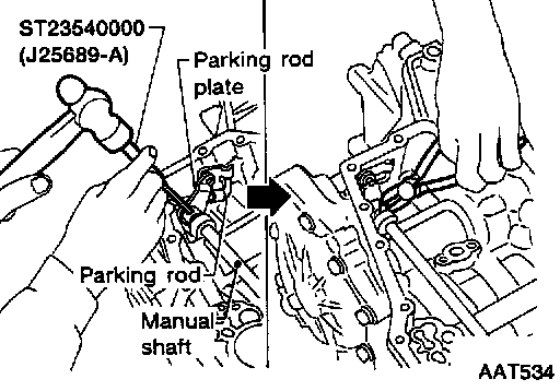 3. Drive and pull out parking rod plate retaining pin using Tool.