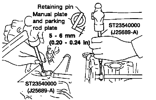 7. Drive in manual plate retaining pin and parking rod plate retaining pin using Tool.