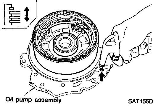 a. Install seal ring onto drum support of oil pump cover and install reverse clutch assembly. Apply compressed air to oil hole.