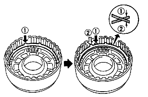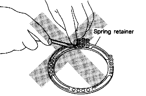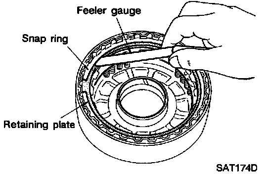 7. Measure clearance between retaining plate and snap ring. If not within allowable limit, select proper retaining plate.