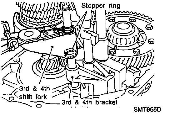 16. Remove 5th & reverse and 1st & 2nd shift forks, and 1st & 2nd bracket.
