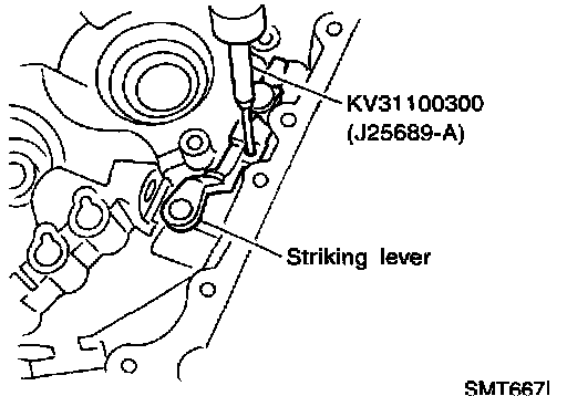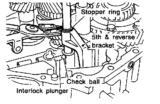 11. Remove interlock pin from 5th & reverse fork rod using Tool.
