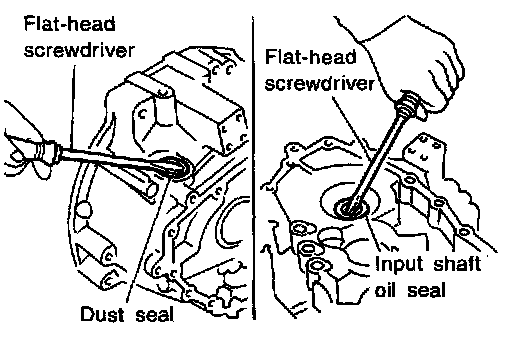 CAUTION: When removing dust and oil seals, be careful not to damage mounting surfaces of dust seal and oil seal.