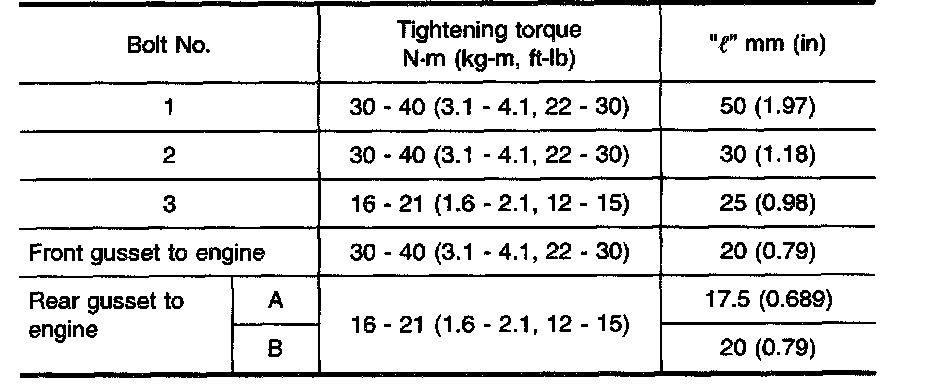 - Tighten LH and rear mounts to the specified torque.