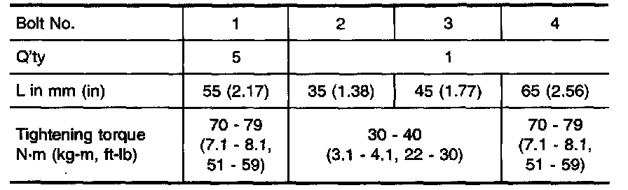 41 - 52 Nm (4.2 - 5.3 kg-m, 30 - 38 ft. lbs.)