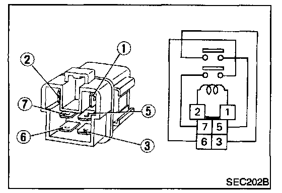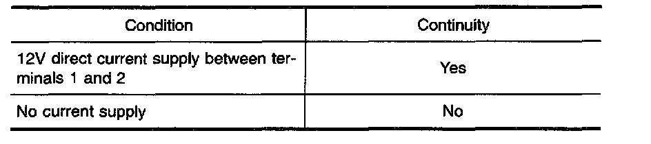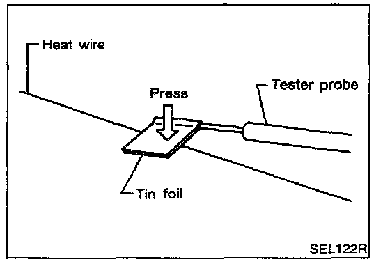 Check continuity between terminals when rear window defogger switch is pushed and released.