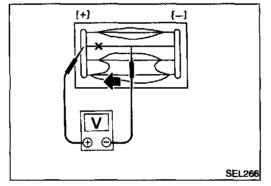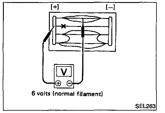 1. Attach probe circuit tester (in volt range) to middle portion of each filament.