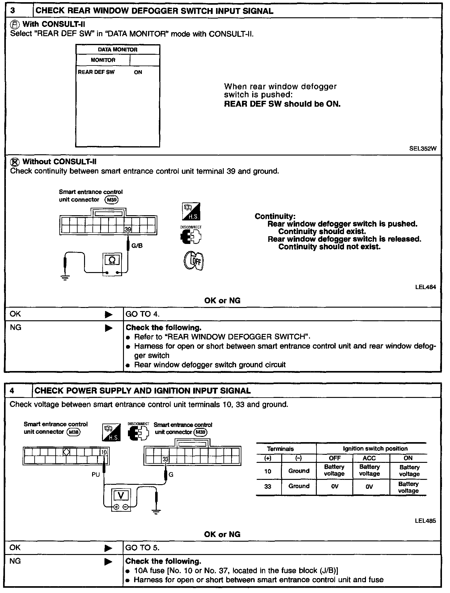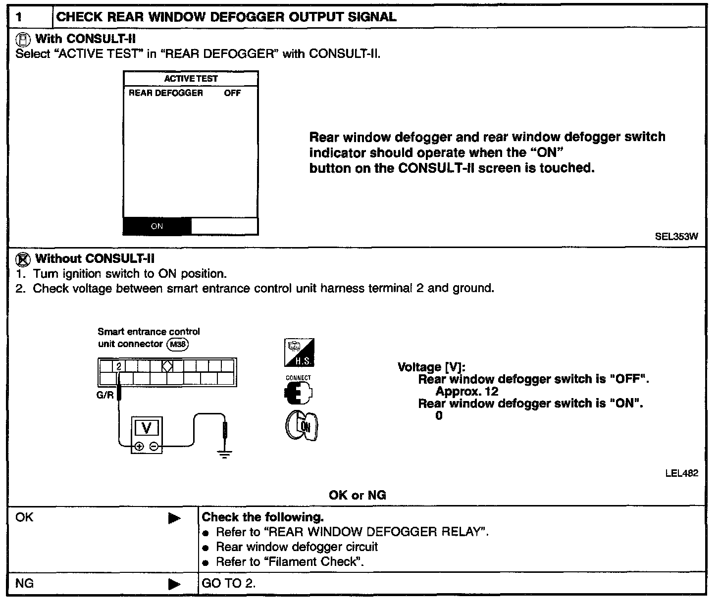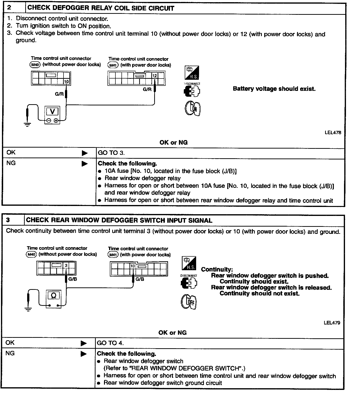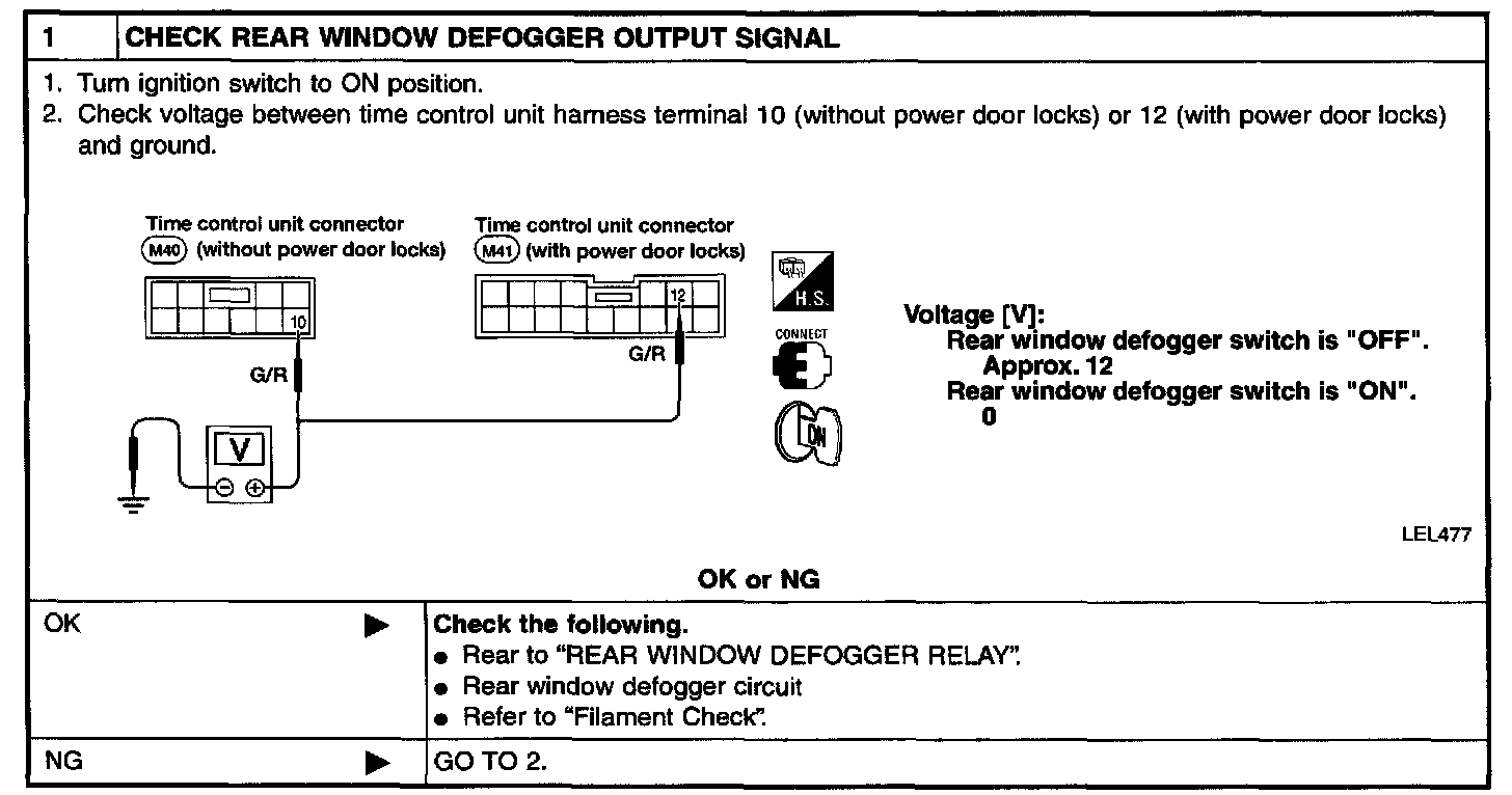 SYMPTOM: Rear window defogger does not activate, or does not go off after activating.