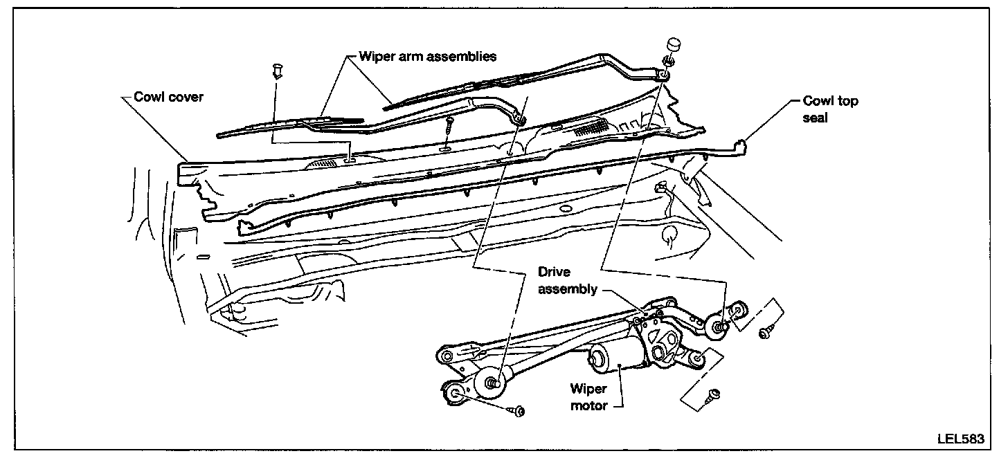 WIPER ARMS1. Prior to wiper arm installation, turn on wiper switch to operate wiper motor and then turn it "OFF" (Auto Stop).