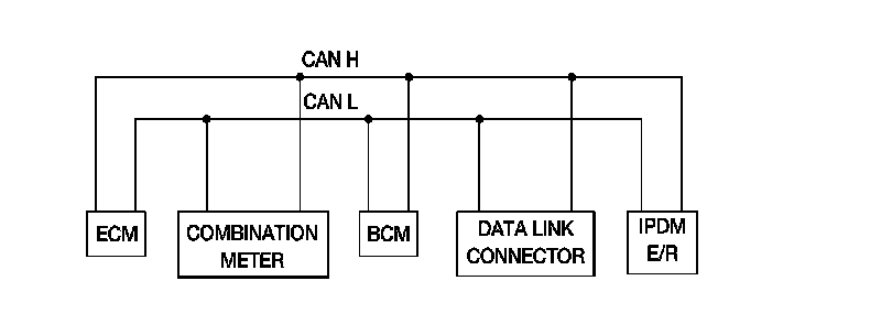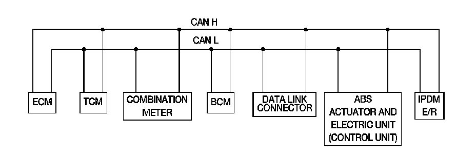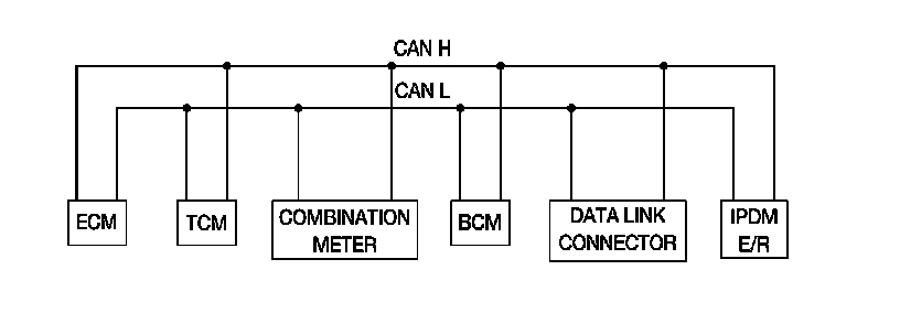 CAN (Controller Area Network) is a serial communication line for real time application. It is an on-vehicle multiplex communication line with high data communication speed and excellent error detection ability. Many electronic control units are equipped onto a vehicle, and each control unit shares information and links with other control units during operation (not independent). In CAN communication, control units are connected with 2 communication lines (CAN H line, CAN L line) allowing a high rate of information transmission with less wiring. Each control unit transmits/receives data but selectively reads required data only.