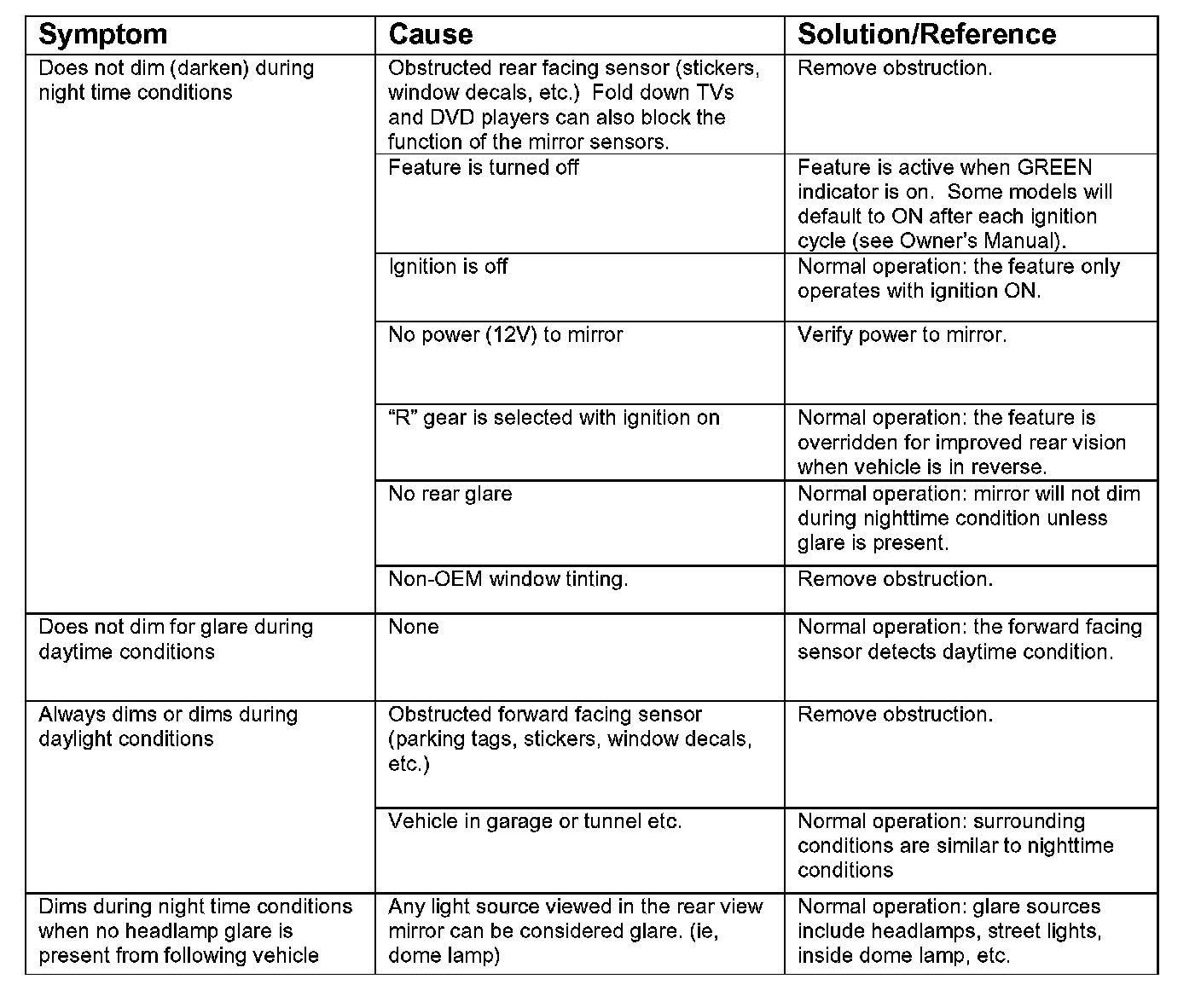 Auto Dimming Mirror Trouble Shooting