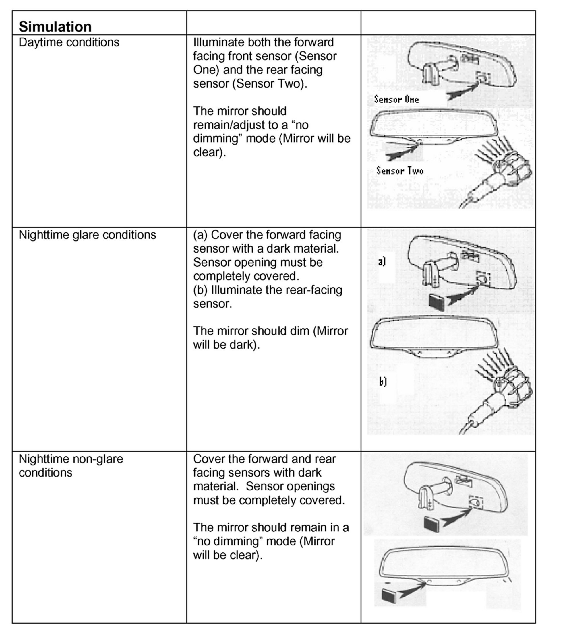 ^ When the front sensor detects nighttime conditions, the rear sensor is active and detects any source of glare (light) coming from the rear (mainly headlights from approaching vehicles). The mirror will automatically adjust the amount of dimming needed to remove the unwanted glare from the inside rear view mirror.
