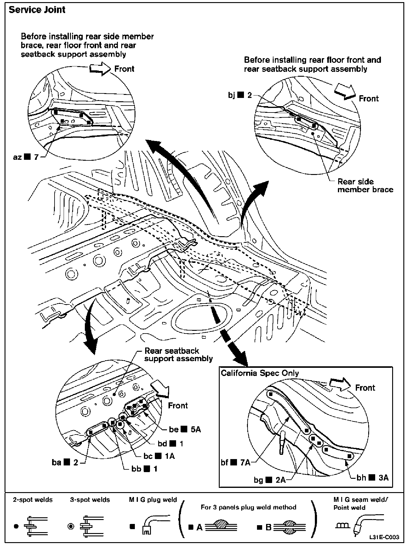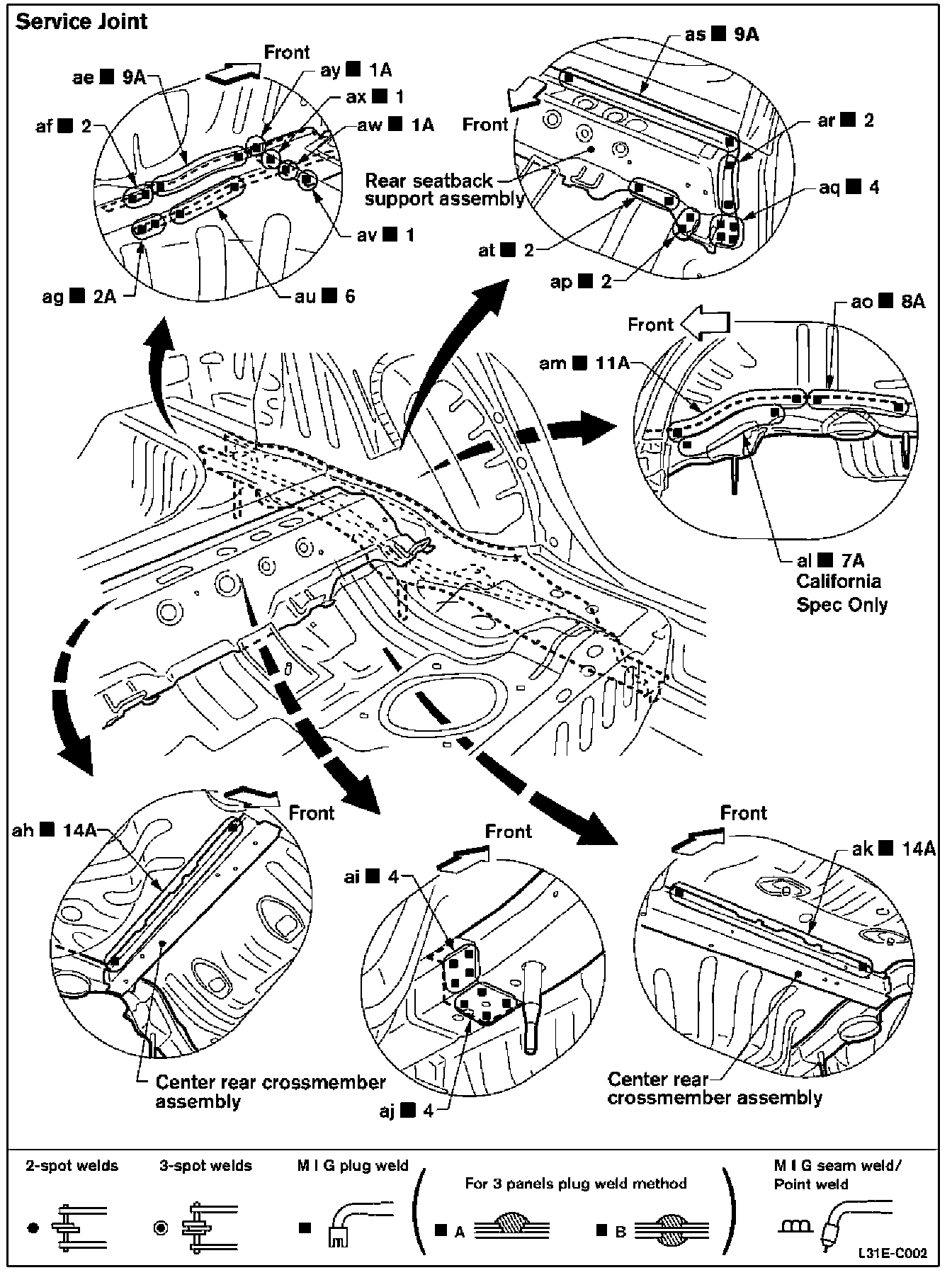^ Rear kicking plate (RH and LH), rear body side welt (RH and LH), front seat (driver and passenger side), center console, rear seat (seat cushion and seatback assembly), rear seat lock anchor, rear seat side bolster assembly, carpet and rear seat belts. Refer to ESM SEC: EI, SE, and SB.