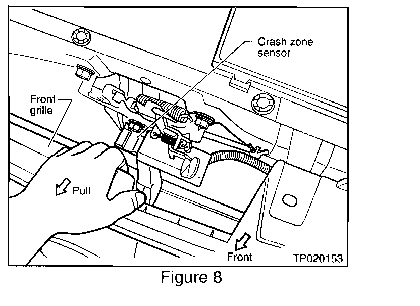 B. Carefully pull the top of the grille forward to gain access to the crash zone sensor (see Figure 8).