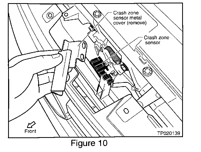 12. Remove the crash zone sensor metal cover (see Figure 10).