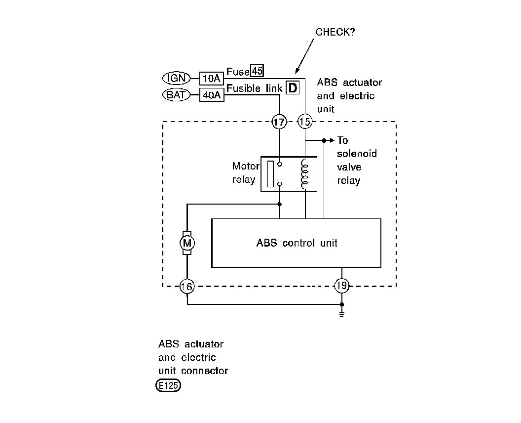 ABS motor relay inspection.
