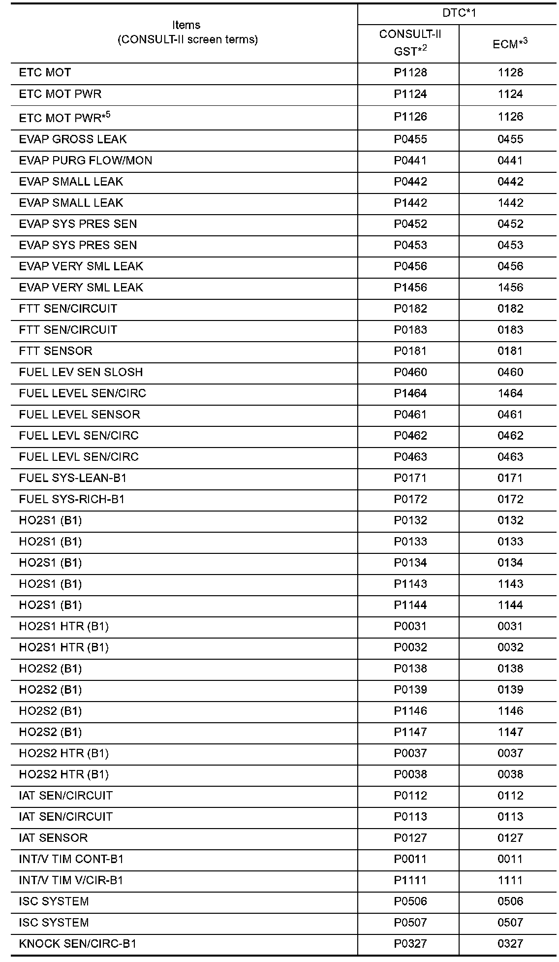 *3: In Diagnostic Test Mode II (Self-diagnostic results), these numbers are controlled by NISSAN.