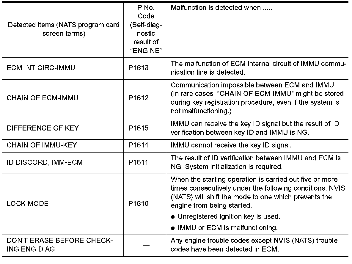 NVIS (NATS) Self-diagnostic Result Item Chart: