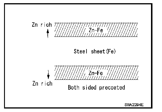 Nissan Genuine Service Parts are fabricated from galvannealed steel. Therefore, it is recommended that GENUINE NISSAN PARTS or equivalent be used for panel replacement to maintain the anti-corrosive performance built into the vehicle at the factory.