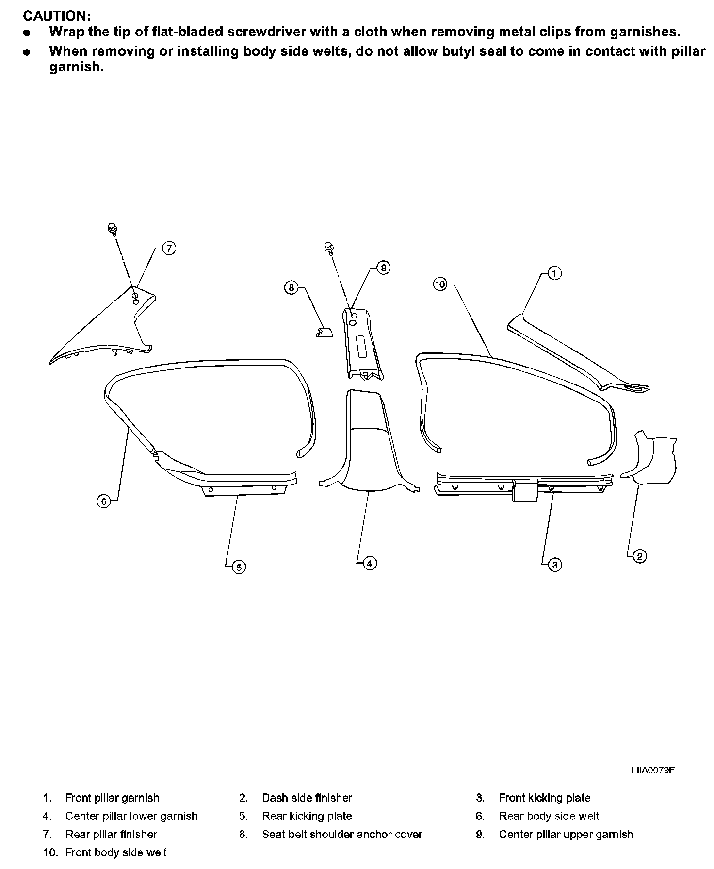 1. Remove seat belt shoulder anchor. Refer to "Removal and Installation of Front Seat Belt"