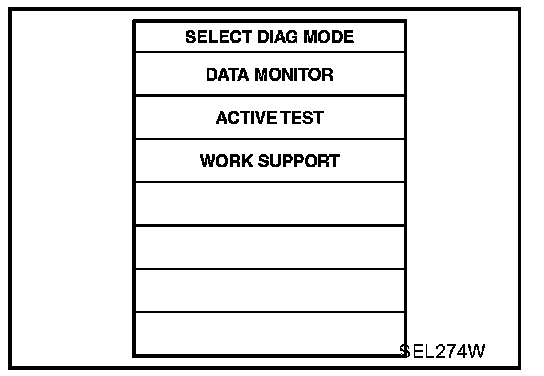 7. Select diagnosis mode. "DATA MONITOR", "ACTIVE TEST" and "WORK SUPPORT" are available.