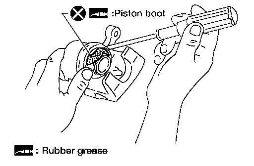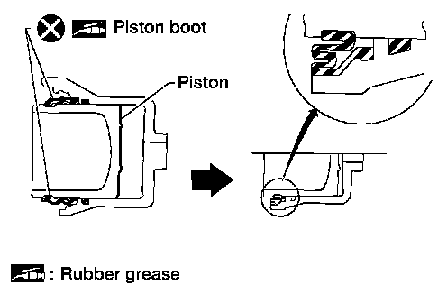 2. With piston boot fitted to piston, insert piston boot into groove on cylinder body and install piston.