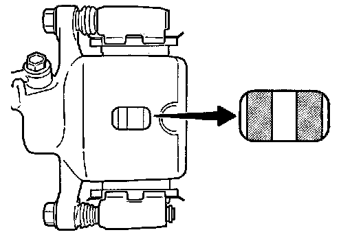 - Remove a wheel with the vehicle lifted up, and then check the thickness of the pad from the inspection hole of the cylinder body. If necessary, check it with a scale.