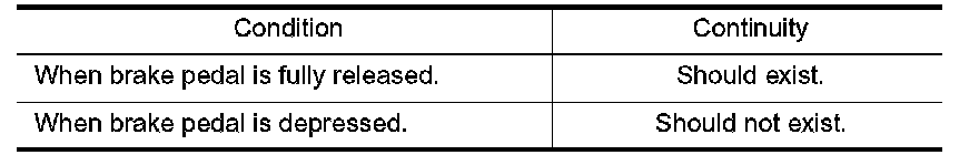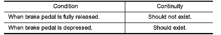 3. Check continuity between stop lamp switch terminals 1 and 2 under the above conditions.