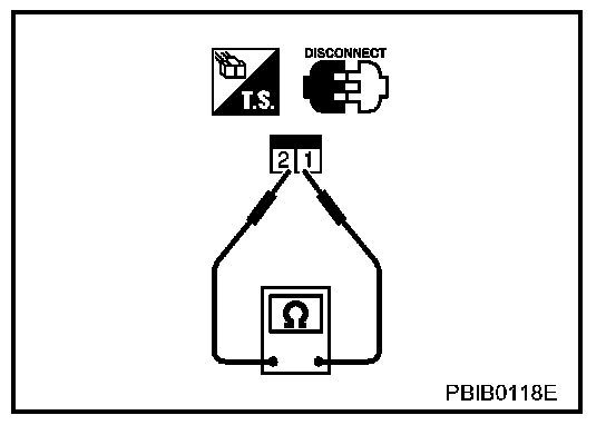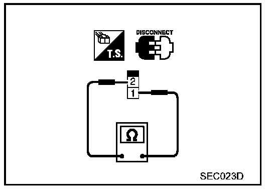 3. Check continuity between ASCD brake switch terminals 1 and 2 under the above conditions.