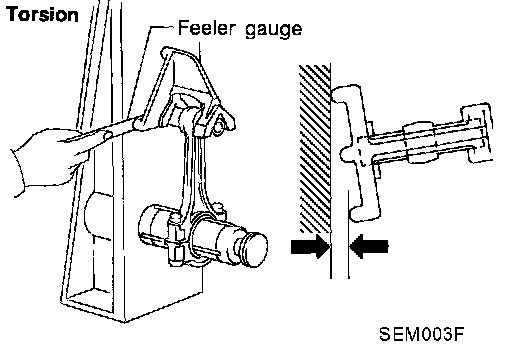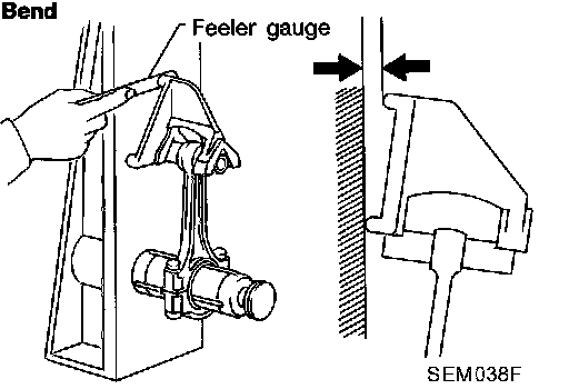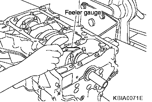 ^ Measure side clearance between connecting rod and crankshaft arm with feeler gauge.