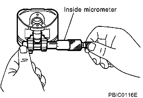 ^ Measure the inner diameter of piston pin bore with an inside micrometer.