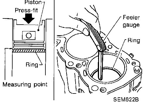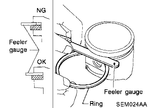 ^ If out of specification, replace piston ring. If gap still exceeds the limit even with a new ring, re-bore cylinder and use oversized piston and piston ring.