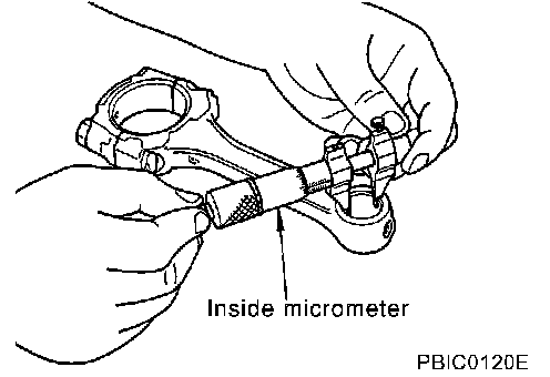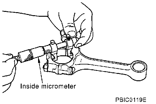^ Install the connecting rod bearings to the connecting rod and the cap, and tighten the connecting rod bolts to the specified torque. Using a inside micrometer measure the inner diameter of connecting rod bearing.