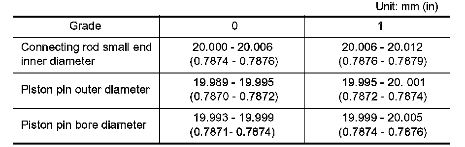^ The connecting rod small end grade and piston pin hole (piston pinch) grade are provided only for the parts installed at the plant. For service parts, no grades can be selected. Only 0 grade is available.