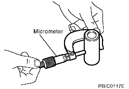 ^ Measure outer diameter of piston pin with a micrometer.