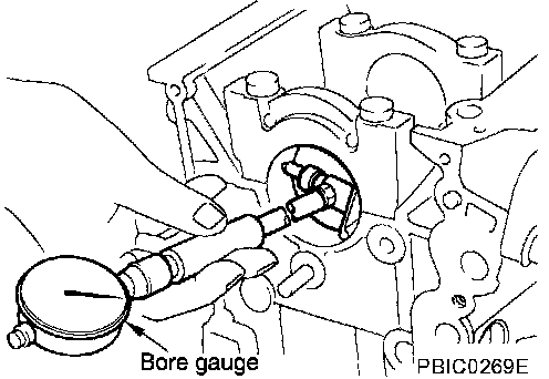 ^ Using a bore gauge, measure the inner diameter of the main bearing housing.