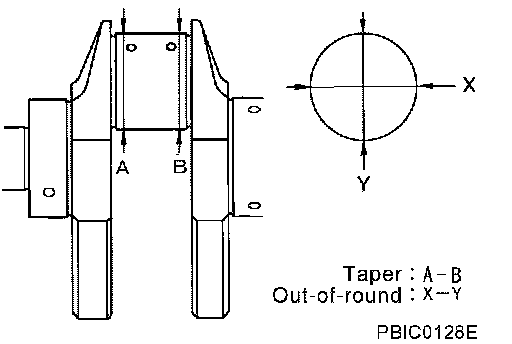 ^ Out-of-round is indicated by the difference in dimensions between "X" and "Y" at "A" and "B".