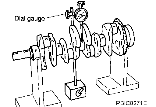 ^ Place a dial gauge straight up on the No. 3 journal.