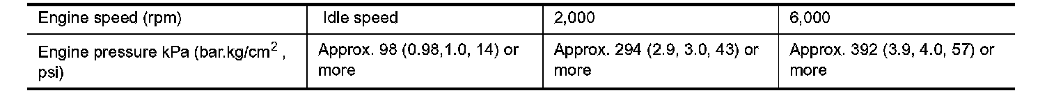 4. After warming up the engine, check that oil pressure corresponding to the engine speed is produced.