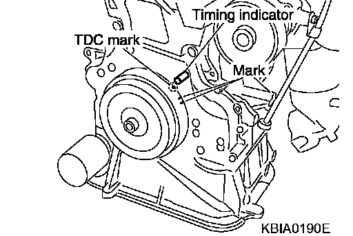 a. Rotate the crankshaft pulley clockwise and align the mating marks to the timing indicator on the front cover.