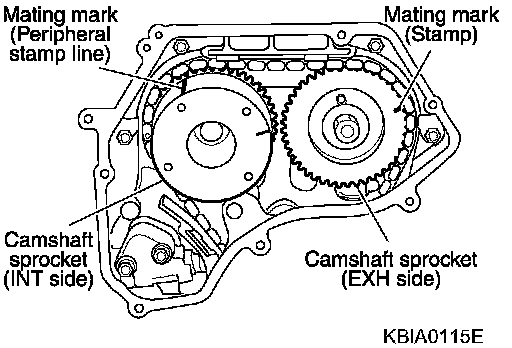 - Be careful not to let mating marks of each sprocket and timing chain slip.