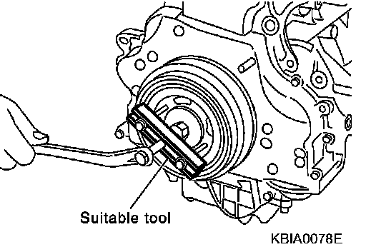 - Secure crankshaft pulley with a pulley holder to tighten the bolt.