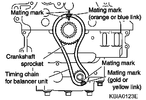 NOTE: Before installing chain tensioner, it is possible to change the position of mating mark on timing chain for that of each sprocket for alignment.