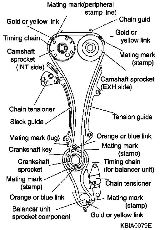 - There may be two color variations of the link marks (link colors) on the timing chain.