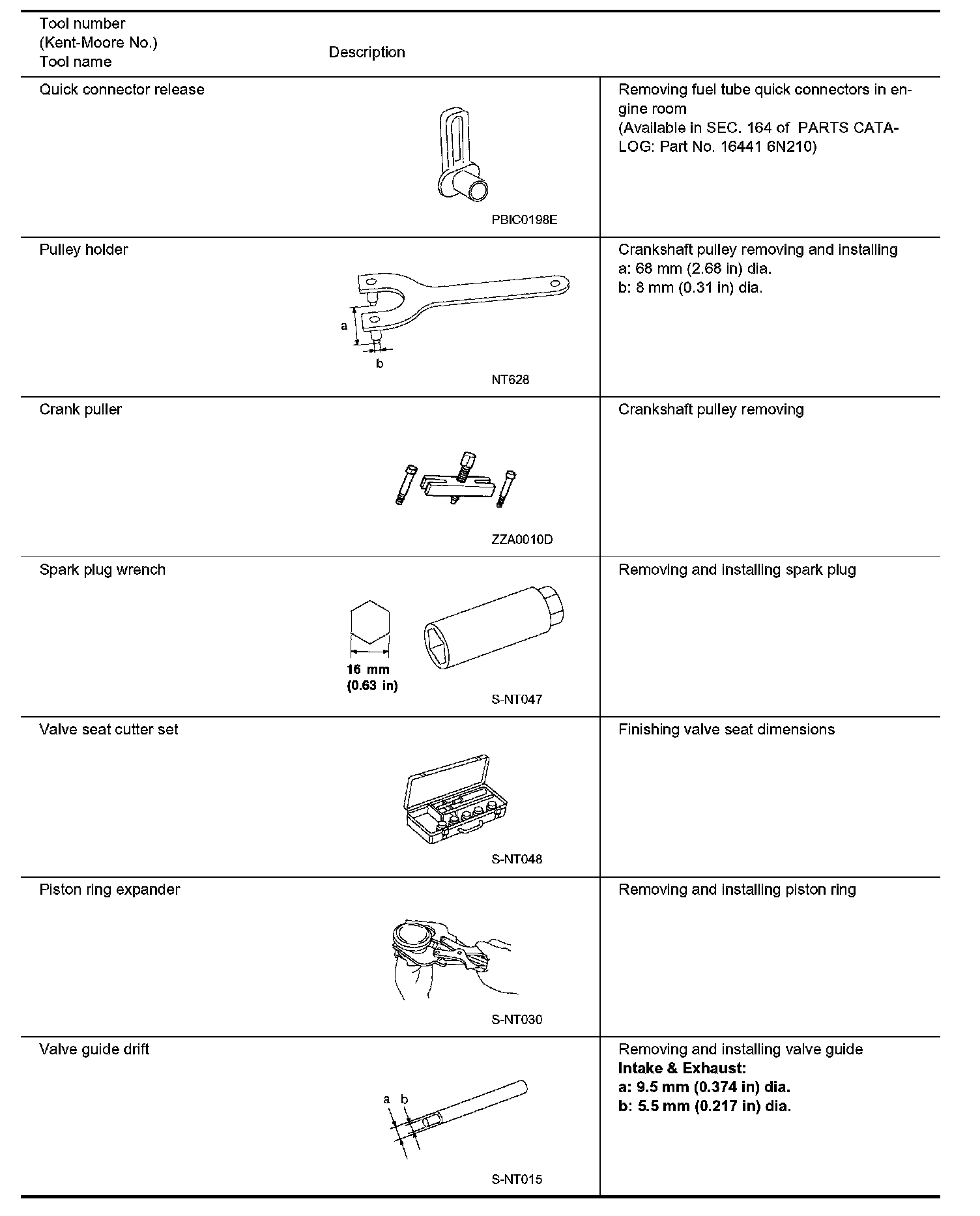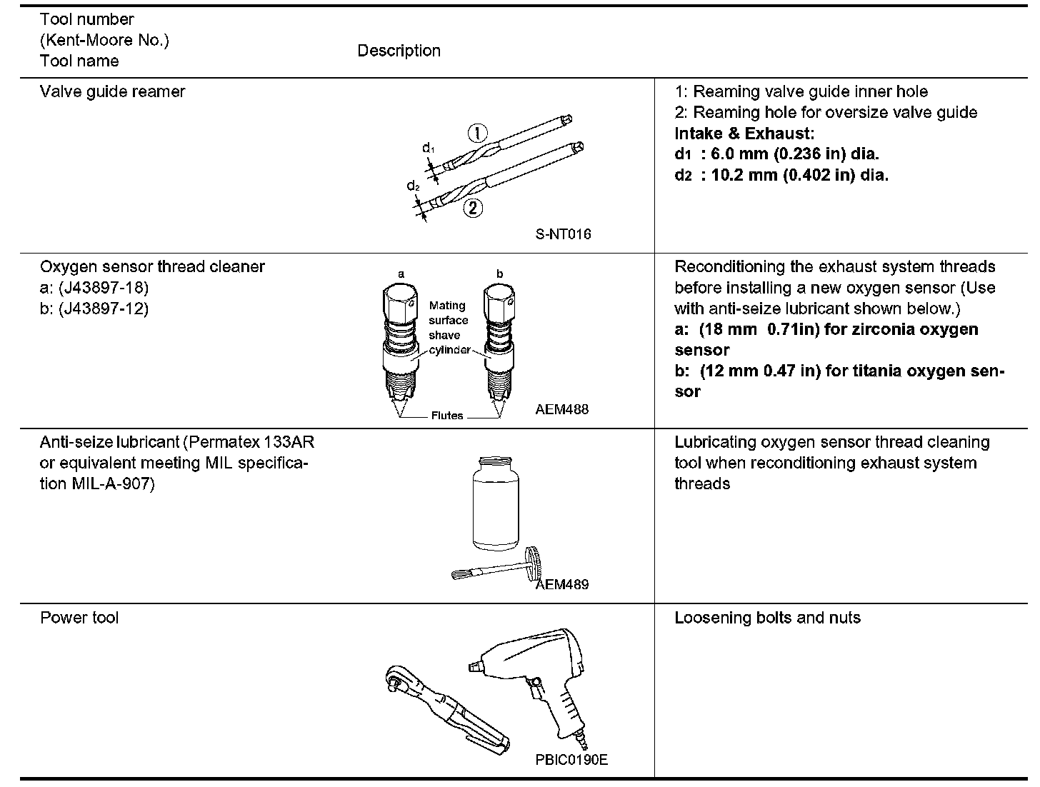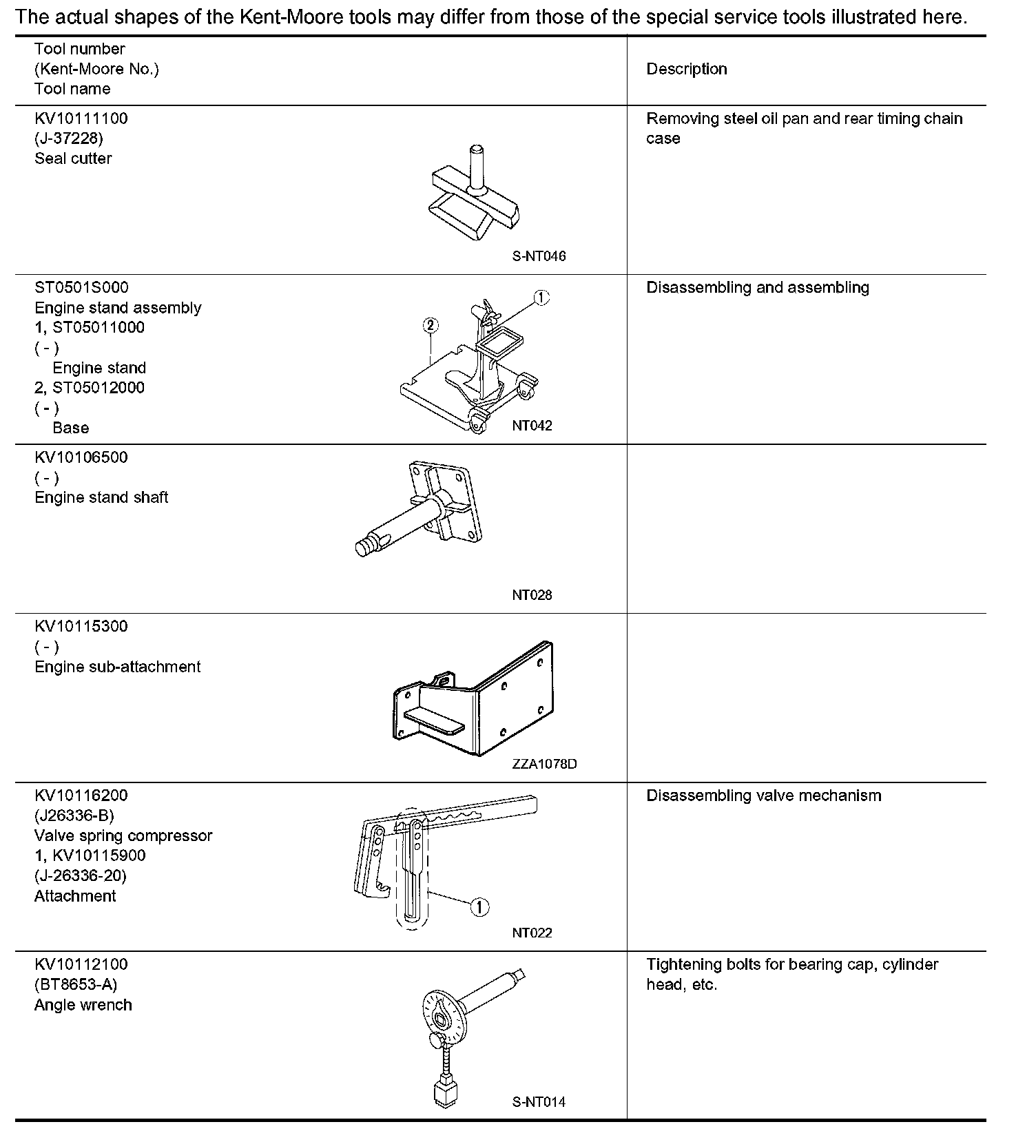 The actual shapes of the Kent-Moore tools may differ from those of the special service tools illustrated here.