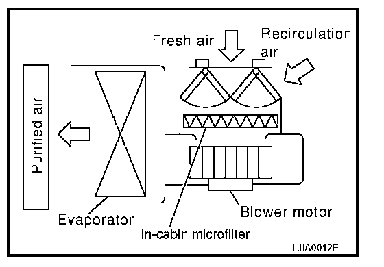 Air inside passenger compartment is kept clean at either recirculation or fresh mode by installing in-cabin microfilter into blower unit.